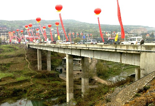 12月9日,汽车行驶在贵开高等级公路开阳段南门大桥上。