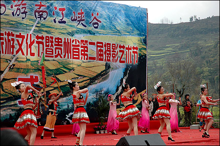3月18日,2007中国•贵州“十里画廊”(开阳)乡村旅游文化节暨贵州省第二届摄影艺术节在开阳禾丰隆重开幕。开阳县禾丰清龙河十里画廊的金盆八寨被称为“中国最美的乡村”;在2006年12月荣获“全国农业旅游示范点”;素有“片片黄金甲,十里美画廊”的美誉。在暮春的三月,是这个浪漫水乡一年中的“黄金时代”—满山遍野的油菜花开了,铺满梯田和乡野。仿佛深深的海洋,十里画廊如同盛放着的金色火焰。