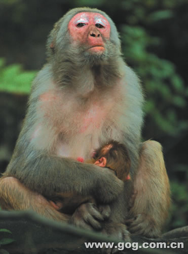 据第一个发现“红脸”生宝宝的喂猴人许启明说,当天早上他给猴群喂食时,发现“红脸”一直躲在山上不肯下来,直到其它猴子都吃得差不多了,才缓缓爬下来。他定睛一看,才发现“红脸”身下抱着一只满身是血的猴宝宝,身上脐带还连着。他激动地大叫,“‘红脸’生宝宝了!”,顿时引来旁边的喂猴人和游客的关注,大家纷纷围了过来给“红脸”喂食。但“红脸”初为人母,戒心很重,只接了许启明递上的一个雪莲果,便返回山上享用了。