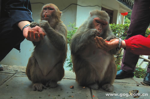 昨天上午8时许,爱猴人士胡女士激动地给记者打来电话报喜“商报记者吗?告诉你个好消息,‘红脸’昨晚生下一只小猴,这可是2007年第一只黔灵猴宝宝!”得知喜讯后,记者立即驱车赶到猕猴经常活动的麒麟洞,一些喂猴人正在给其它几位“准妈妈”喂食。记者将“红脸”昨晚生下一只小猴的消息一发布,人群立刻发出一片欢呼,一些喂猴人连忙掏出手机,向尚未得知喜讯的好友报喜。得知“红脸”在弘福寺一带活动,大家纷纷赶去,一些喂猴人还不忘买些食物,好好慰问一下“红脸”妈妈。