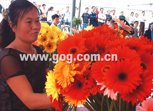5月22日,乌当区委、区政府在贵阳国家农业科技园区花园基地举行2007“花卉大王”评选活动,共有37家花卉大户报名参加评选,20户入围。专家对入围户从种植规模、科技含量、鲜花色泽、花卉外形、花瓣韧性等方面进行综合评比,共评出非洲菊、康乃馨两种花卉的一、二、三等奖各一名,优秀奖各7名。图为“花卉大王”和他们种植的鲜花。