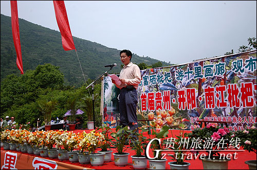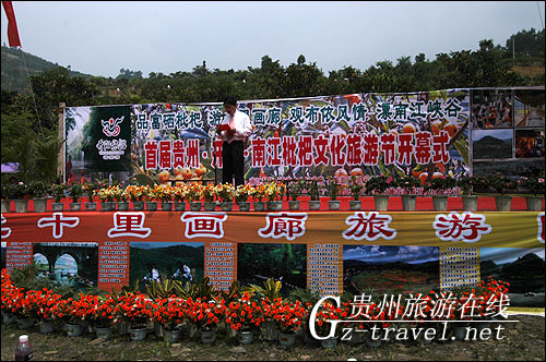 本站讯 5月26日,“首届贵州(开阳)南江枇杷旅游文化节”在开阳县“十里画廊”平寨境区开幕。此次旅游文化节为期9天(2007年5月26日--6月3日),以“枇杷乡里品枇杷,布依寨前观民俗”为活动主题,是开阳县在全国农业旅游示范点——青龙河“十里画廊”举办的又一大型乡村旅游的文化体验活动。