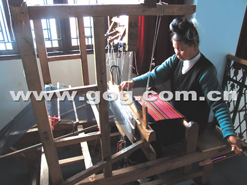 贵州民族民俗博物馆占地1500平方米,馆内收藏有苗族服饰收藏家曾宪阳先生的500余件精美物品,有苗族服饰、苗族手工艺品、蜡染、银饰品、织布机等。其中,有9件作品被列为国家级重点保护文物,18件被列为省级重点保护文物。图为苗族妇女在辫绣。