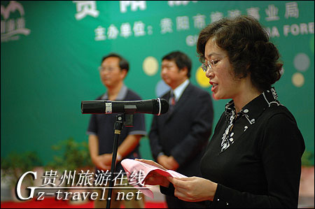 贵阳市副市长季泓在开展仪式上致辞,她希望借此次摄影展,大力宣传贵阳市旅游资源,提升贵阳知名度,能让更多的人来关注贵阳旅游,推进贵阳旅游。并为摄影展进行剪彩仪式,为获奖者进行颁奖。