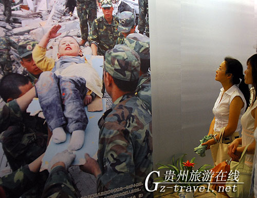 6月30日, “2008中国抗震救灾大型新闻图片展”抵达贵阳,并于7月1日上午开始在省博物馆展出。此次展出的由新华社记者拍摄的200多幅图片分为《关怀》《灾情》《营救》《援助》《恢复》五个部分,生动再现了中国人民团结一致、不屈不挠抗击四川汶川大地震的感人场景。