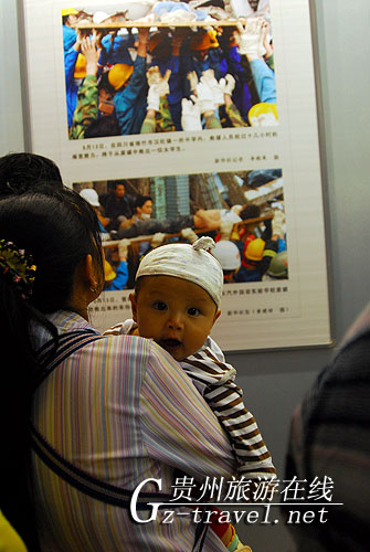 贵阳市民在参观2008中国抗震救灾大型新闻图片展。