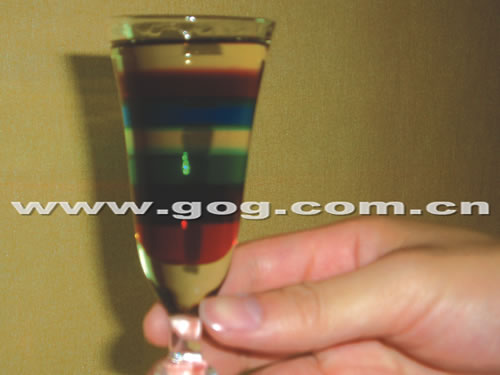 记者了解到,调配“多彩贵州”的发烧友多是通过网络认识,以酒结缘的业余爱酒人士。他们认为,茅台系列酒的品质丝毫不逊于六大基酒中的任何一种,完全能胜任鸡尾酒基酒。为此,经过长期的调配,发烧友们终于完成了呈现在记者眼前的“多彩贵州”鸡尾酒,完全以茅台系列酒作为基酒。记者看见,“多彩贵州”共有红、兰、绿、黄、白等多种色彩组成,层次鲜明、多彩绚丽,发烧友们认为其无论色彩、口感绝不逊于用六大基酒调出的鸡尾酒。