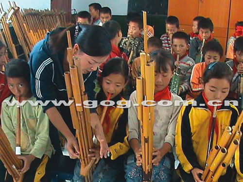 白云区都溪小学将芦笙这一民族乐器引入课堂,使学生接受传统民乐教育。据了解,1999年9月,该校开办了第一个芦笙班,至今已有8年历史。目前该校有专职芦笙教师1名,班班开设了芦笙课,学校有芦笙74把、苗族服装131套、芒筒38把、苗族头饰40个。