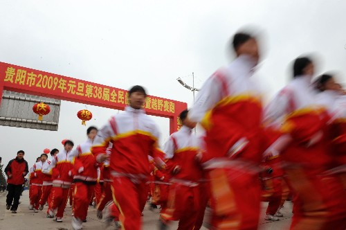 当日,贵阳市金阳区近万名群众参加了贵阳市2009年元旦第38届全民健身跑暨越野赛跑活动。