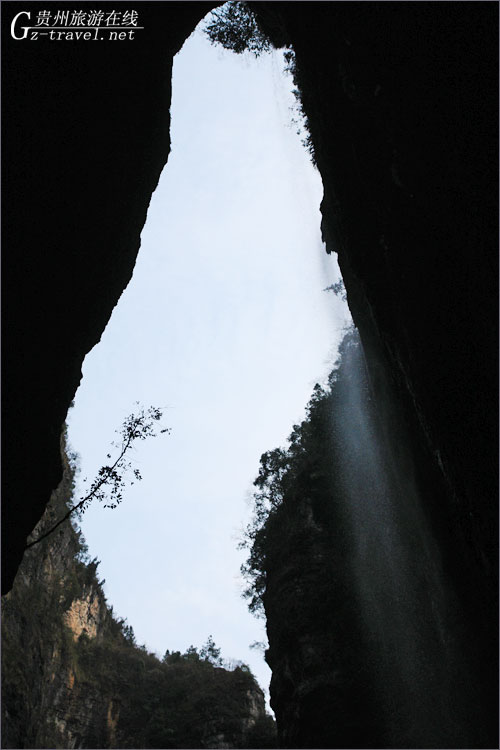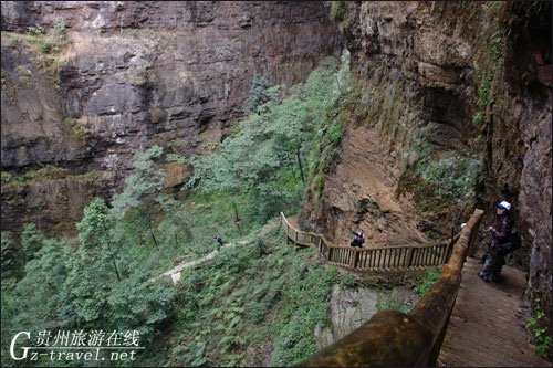 从天坑石壁沿阶而下