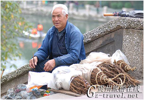 本站讯 今天是收到省气象局大幅降温消息的第一天,但寒流似乎并没有袭来,而南明河畔的早忙人都如期而至。清早,卖烟叶的老伯就坐在桥头,等候着老主顾;河畔做瑜伽的女士,面对清亮的南明河,神思合一的做着高难的动作;还有其他来来往往在南明河畔做着各种晨练的早忙人,当然还有在南明河上最早忙碌着的河道清洁工身影。