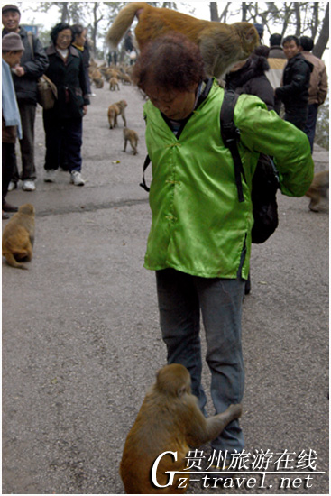 程阿姨告诉记者,她每个星期都会不定时的买上大量的食物到公园里来喂猴,而且这样做的不只是她一个人,还有很多的热心市民,都将到黔灵山喂猴作为了生活的一部分。