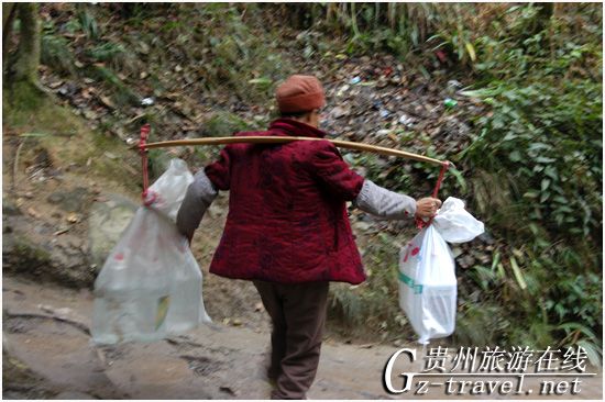 崎岖而上的山路,背水人