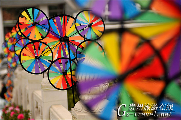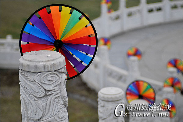 关于风车有个神奇的传说:传说天上有个十头鸟,因为偷吃供果,被贬下凡间。原本是为了让它认真思过,以后好重返天庭。不曾想它却贪念尘世,不但不悔改,反而四处搞破坏,弄得黎民百姓苦不堪言。周文王得知以后,就请姜子牙降服这只罪鸟。姜子牙掐指一算,发现在十头鸟最害怕的就是八卦风轮和乾坤竿。于是就用竹条围了圈,代表三百六十五天,又糊上八卦轮,用12根辅条,代表12个月,12根辅条有24个头,就代表24个节气,并在上面附有春夏秋冬四道躯魔降妖平安的符,叫做四季平安。做好以后将八卦风轮插在三丈六尺五的乾坤竿上。从此以后,十头鸟真的就慢慢消失了,天下也就太平了。百姓看着很吉祥,又能辟邪,就学着做。但是百姓是不能用乾坤竿,也不能用八卦风轮的,只好将其名改为天地竿和风轮,但12、24、365的吉祥数字就保留下来。有经过漫长的一段时间有能工巧匠把风轮上加上泥鼓,风一刮,就发出清脆响亮的声音。在民间风车代表了喜庆和吉祥,有驱魔镇宅降妖只效。风车色泽鲜艳,红色象征红太阳,黄色则代表着我们的炎黄子孙,绿色代表环保,有太阳照耀着人间,人们生活在地球上之意,深受人们喜爱。