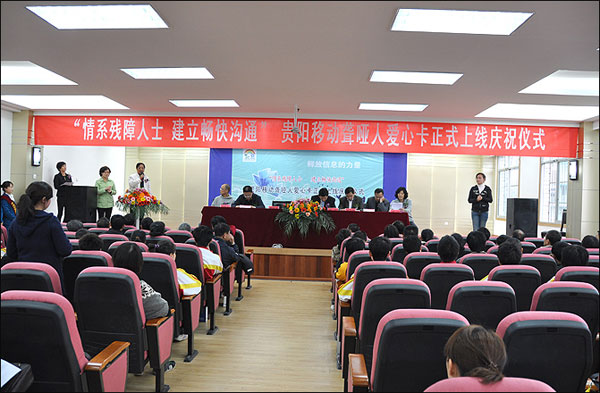 2010年03月30日下午15:30在贵阳市盲聋哑学校举行移动推出聋哑人爱心卡正式上线庆祝仪式。