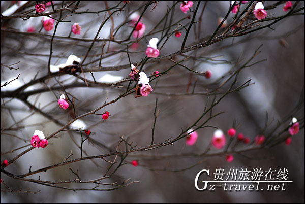 本站讯 2011年的瑞需从17号开始降临贵阳,大雪在给城市生活造成些许压力之外,也把近郊的几座公园妆扮得银装素裹。特别是南郊公园,在梅花山上枝枝梅花迎雪盛开,香气袭人,成为踏雪寻梅的好去处。