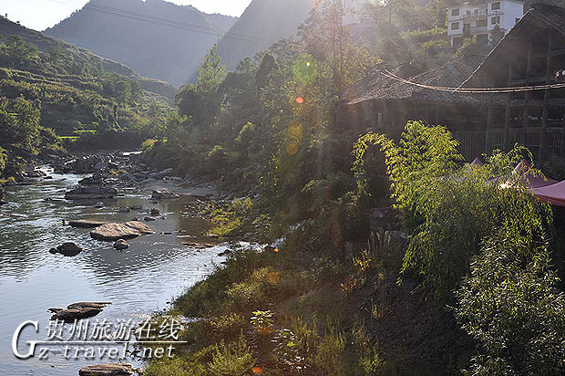水磨坊建于其中,古作坊式的建筑,河水穿过屋子,带动水车。引流的河水落差声,小鸟雀跃的叽喳声,清风吹动树叶的梭梭声。在这样的环境下来避暑,闲来一壶清茶,三五好友围坐一桌,还可在青龙河里面玩水嬉戏,傍晚漫步于河畔边,听着归巢鸟的叫声,感受夕阳的余光,看着鲜明的布依族民居建筑风格。何乐而不为?
