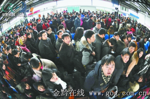 据悉 1月19日,贵阳金阳客车站再现客流高峰,工作人员加强站内管理,秩序井然。