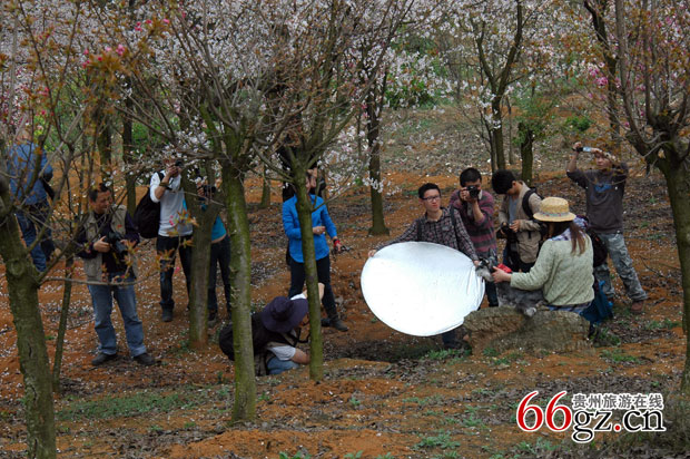 贵州旅游在线讯 3月10,正值周末,贵阳市残疾人协会、贵州省聋人摄影学会和贵阳市盲聋哑学校教师等一行近50余人赴贵阳清镇王二村簸箩农场赏花摄影采风。满山遍野上百亩的樱花、玉兰花、梨花、桃花,还有农田中的油菜花也同时开放,形成一个五彩缤纷的花花世界。