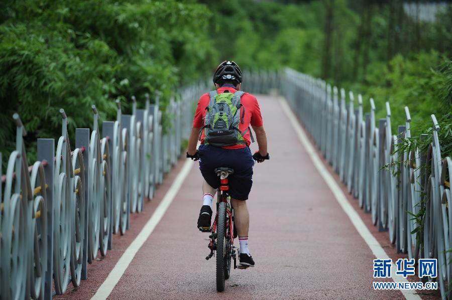 7月4日,一位市民骑行在自行车专用车道上。自今年4月投入使用以来,贵州省首条专用自行车道——位于贵阳市观山湖区的“慢交通系统”受到广大群众特别是自行车爱好者的青睐。市民们骑行在绿荫下、翠湖边,既锻炼了身体又放松了心情。据了解,这条自行车道全长10.5公里、宽2.5米,沿线配套9个换乘服务站点,市民可在站点租用自行车。据介绍,观山湖区计划将拓展自行车道至辖区所有主干道旁。