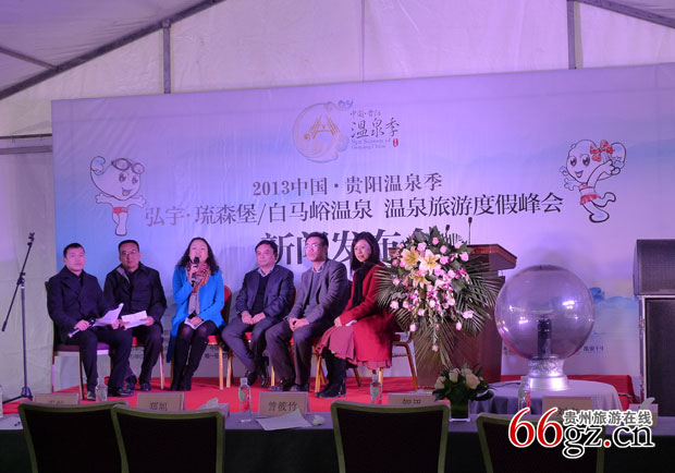 发布会上,贵州省旅游局副局长郑旭和贵阳市旅发委副主任曾筱竹,在会上分别介绍了加快发展全省和贵阳市温泉旅游的概况;弘宇琉森堡总经理谢志慧介绍了筹备工作和弘宇琉森堡大型休闲度假区的在建情况;白马峪温泉副总经理麦海鸿在发言中说,在“爱上白马峪”温泉主题paty上将发放120张体验券,同时举行民族歌舞与民族服饰展演,著名的“苗族之花”、歌手欧桑和 有“百灵鸟”之称的阿娜丹将到场献唱。