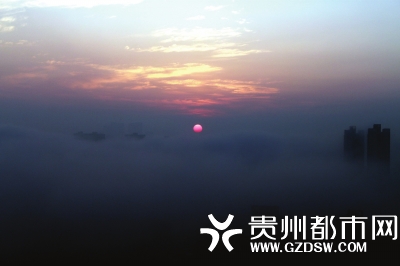 昨天6点过,金阳被大雾笼罩,只见部分高层建筑物在大雾的“装扮”下若隐若现。记者 田儒森摄