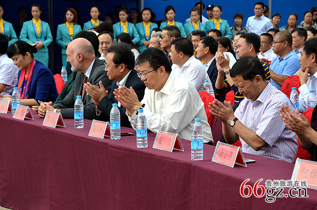 贵州旅游在线讯 9月8日,多彩贵州城万国博览城项目开工仪式在贵阳启动。克罗地亚前副总理司马安·希莫尼奇、贵州省政府副秘书长张汉林、贵州省商务厅厅长申晓庆、贵州省旅游局局长傅迎春等领导嘉宾出席仪式现场,贵州省副省长蒙启良宣布万国博览城项目开工。