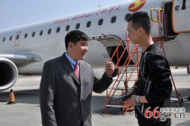 天津航空贵阳运行基地总经理马千里接受记者采访