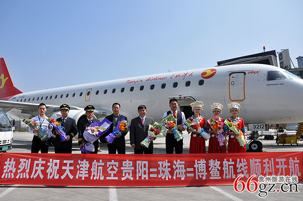 贵州旅游在线讯 3月18日上午11:55,天津航空贵阳=珠海=博鳌航线GS6501航班起飞,15:10分该航班平稳降落博鳌机场,这标志着天航首条通航博鳌的航线顺利开航,这将对贵州及琼海区域的经济发展起到推动作用。