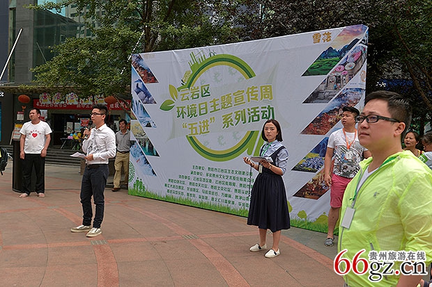 贵州旅游在线讯 6月5日,由云岩区生态文明建设局主办,多彩贵州文化艺术有限公司承办的云岩区“‘六·五’环境日主题宣传周”暨“五进”系列活动最后一场“环保宣传进广场——低碳出行·健康生活”在贵阳市云岩广场举行,标志着系列活动圆满成功。