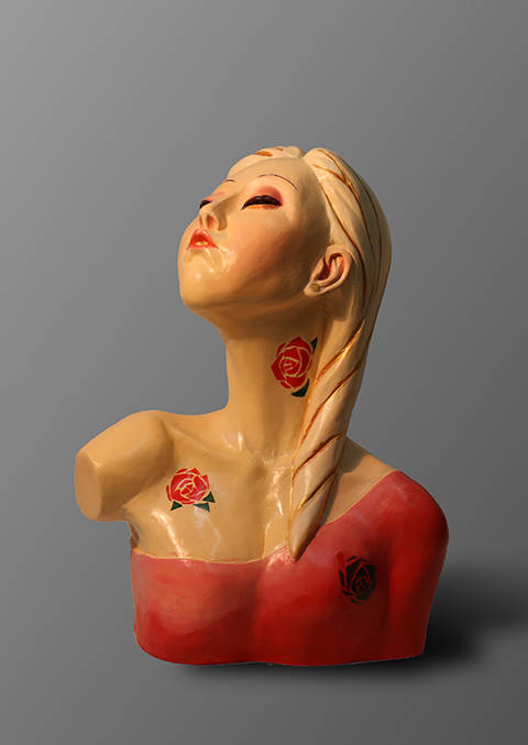 《索·吻》是以吻为题材,用夸张的手法与艳俗的色彩,勾勒出恋爱中小女人所拥有的天性。