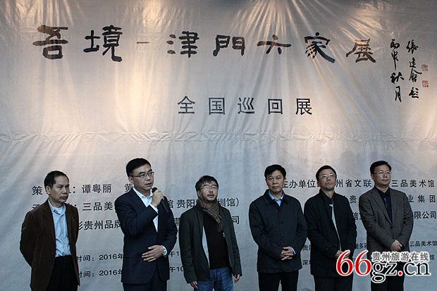 贵州旅游在线讯 11月6日,由三品美术馆主办的“吾境——津门六家展”巡回展第二站在多彩贵州文创园三品美术馆开幕。贵州省文联党组书记杨梦龙,贵州民族大学美术学院院长、贵州美术家协会副主席王建山,三品美术馆馆长黄海林、多彩贵州文化产业集团党委书记、董事长袁华,多彩贵州文化产业集团党委副书记、副总经理徐进,多彩贵州城建设经营有限公司党委书记、董事长杨卫出席开馆仪式。