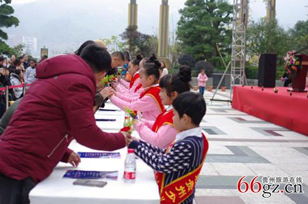 多彩贵州少儿歌舞团形象大使为领导及嘉宾配戴胸花