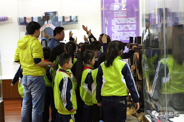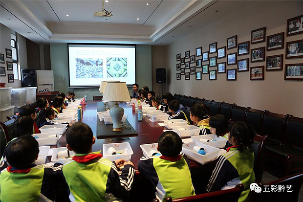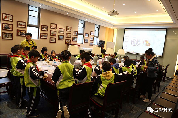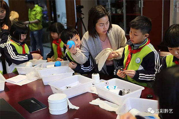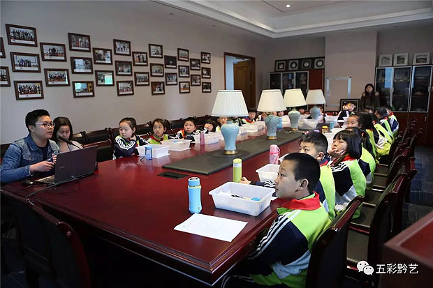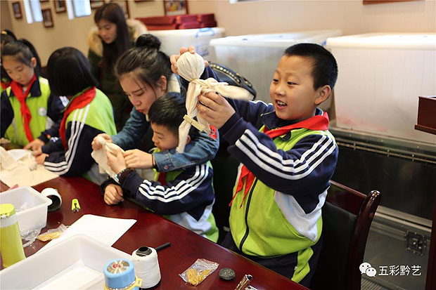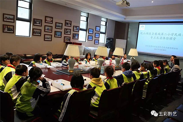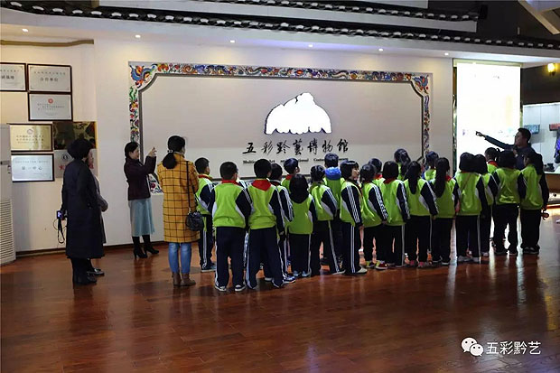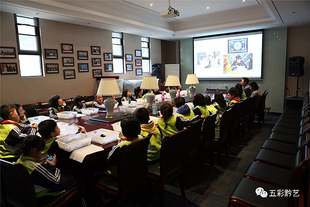 贵州旅游在线讯 和煦的春风,绽放的百花,在这春暖花开的日子,贵阳市观山湖区会展城第二小学三年级手工扎染体验课堂在五彩黔艺博物馆实践开展。