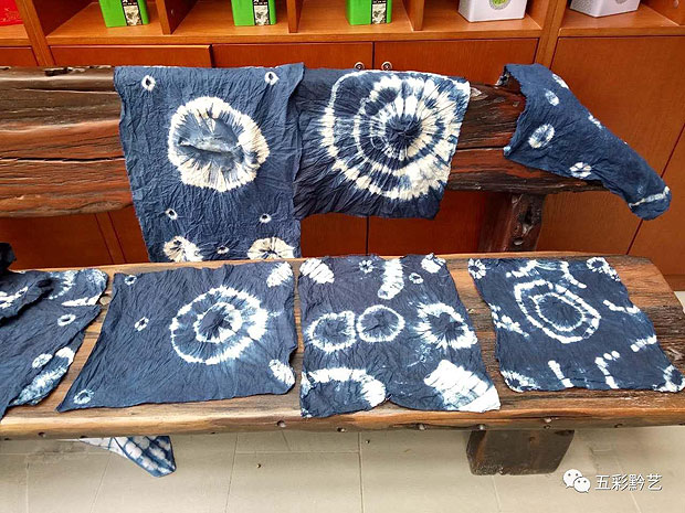 扎染有一百多种变化技法,各有特色,变化自然,趣味无穷。更使人惊奇的是扎结每种花,即使有成千上万朵,染出后却不会有相同的出现。这种独特的艺术效果,是机械印染工艺难以达到的。