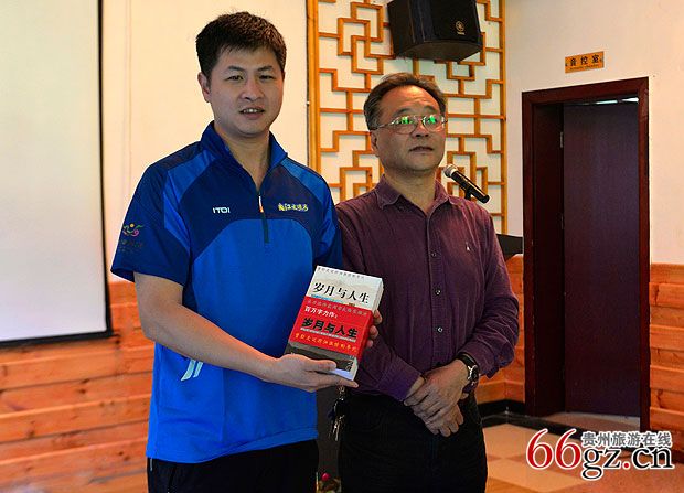 南江大峡谷景区负责人林文强(左)接受周君良先生授书