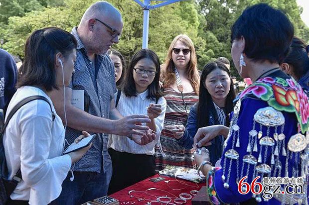 活动现场,松桃十余厂家还为贵大师生展销了其地方特色食品和工艺品,引得众多吃货围观。在非遗课堂,“苗家金凤凰”松桃苗绣传承人石丽平以故事的形式叙述苗绣的起源及丰富的文化内涵,尤其是和她带领大家创业的经历,赢得了百余同学们的喝彩。