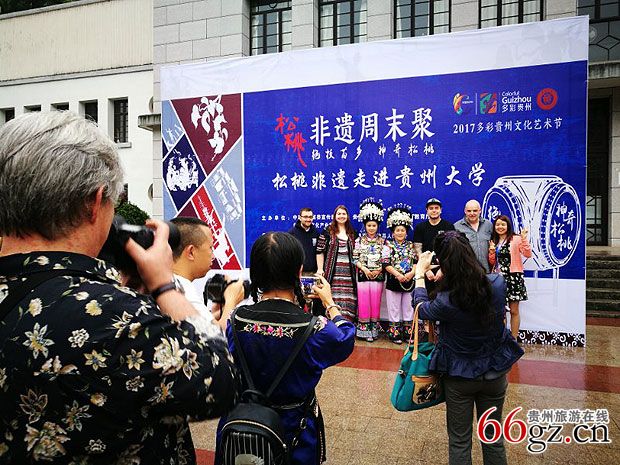 贵州旅游在线 6月4日上午,“2017多彩贵州文化艺术节非遗周末聚——绝技苗乡·神奇松桃周末聚”活动走进贵州大学,贵州大学党委副书记骆长江出席开幕式并参加系列活动。