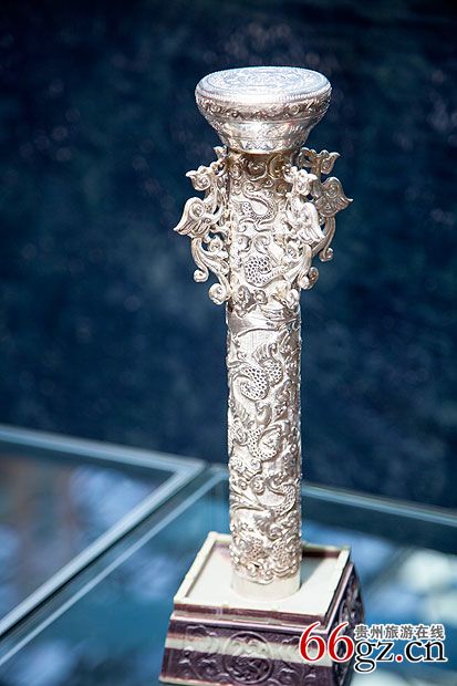 李正云出生在素有“苗族银匠村”之称的雷山县控拜村,从小随父辈学习苗银锻制技艺,是苗银银饰家族祖传手艺第九代传人,还被业界尊称为“工艺教头”。2012年和黔艺宝合作制作的银饰“苗家撑天柱”获得多彩贵州两赛一会特等奖。该作品源自苗族古歌中撑天柱的传说,纯银撑天柱为全手工潜心雕刻而成,实为精美绝伦的艺术精品。