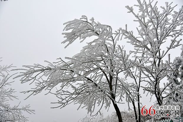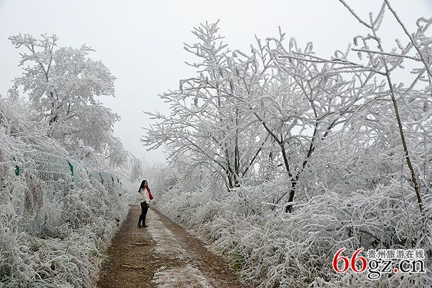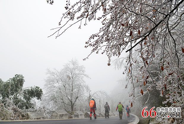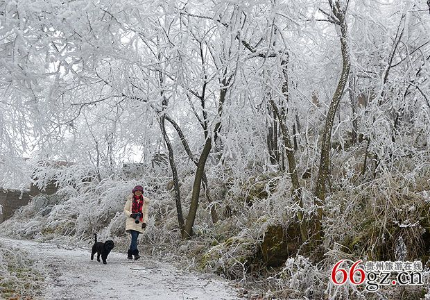 贵阳云雾山现冰雪奇观 引市民拍照留念