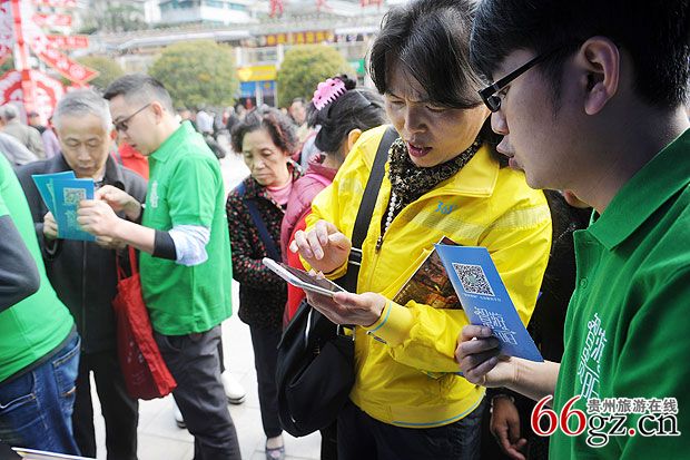 记者在现场看到,“智游贵阳”三进活动在黔灵公园首场推广活动现场,大批贵阳市民及其他省市的游客争相关注平台,并在现场工作人员的指导下,利用平台查询相关信息。