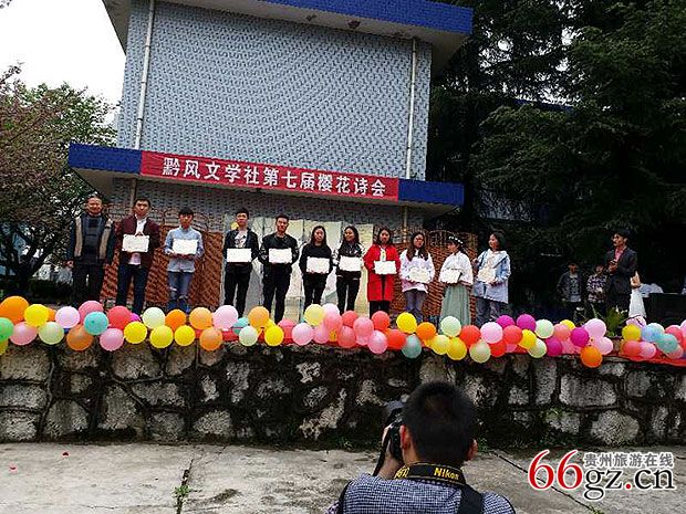 今年4月1日星期天,樱花盛开时,贵州民族大学把樱花与诗歌构成绝妙景观,同学齐聚,诗词唱齐鸣,为省民大的诗赏樱花的佳节增光增彩。