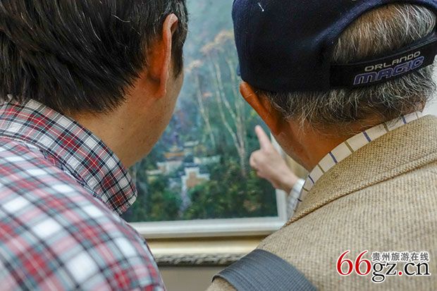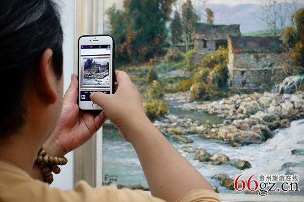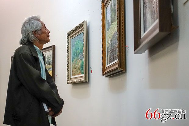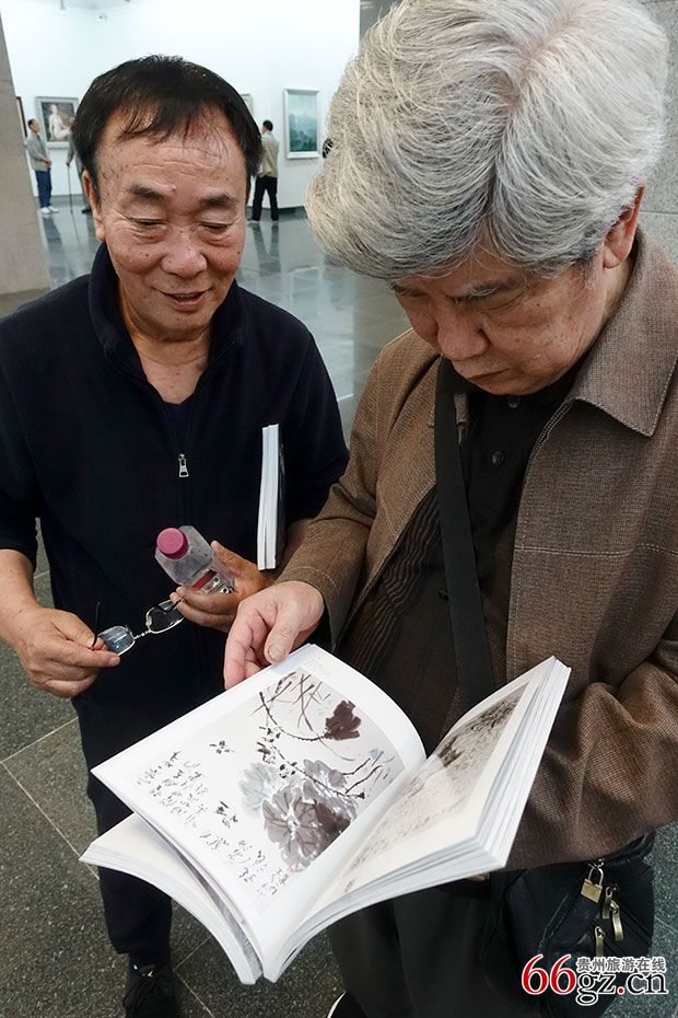 贵州师大美术学院副院长黄光辉(左)前来观展