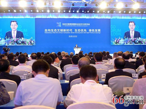 贵州省委书记、省人大常委会主任孙志刚致欢迎辞,他说,本届论坛年会以“走向生态文明新时代:生态优先 绿色发展”为主题,将有助于各方增进共识、深化合作,推进全球生态文明建设。今天四面嘉宾云集,八方高朋毕至,共有来自35个国家和地区的2426名嘉宾参会,参会的国际组织数量多、层次高、参与程度深,几乎涵盖了全球生态自然环境和可持续发展领域所有顶级国际知名组织。