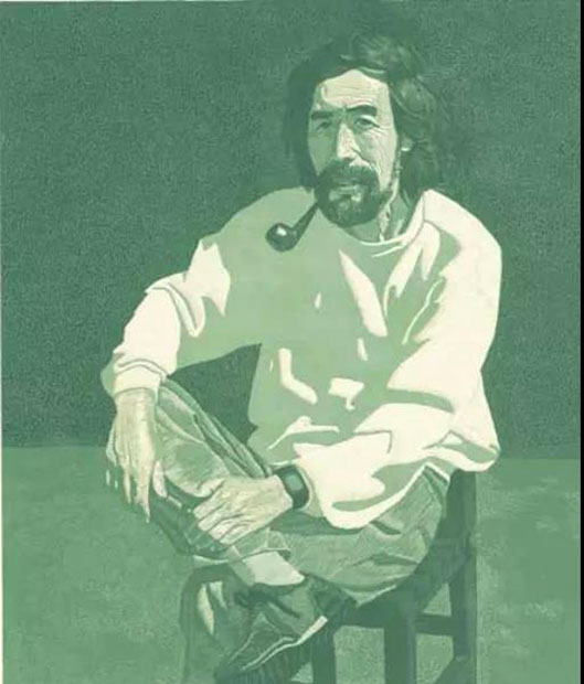 绿色背景 | 彩色木刻 | 57.7cmX68.8cm | 1990
