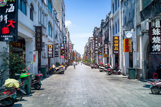 老街两旁分布许多中西合璧的骑楼式建筑,