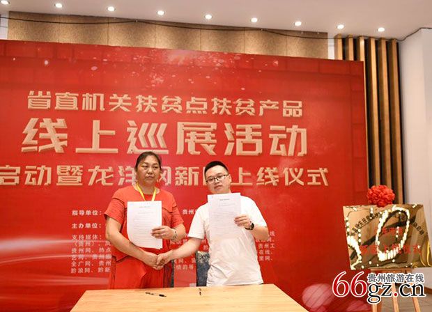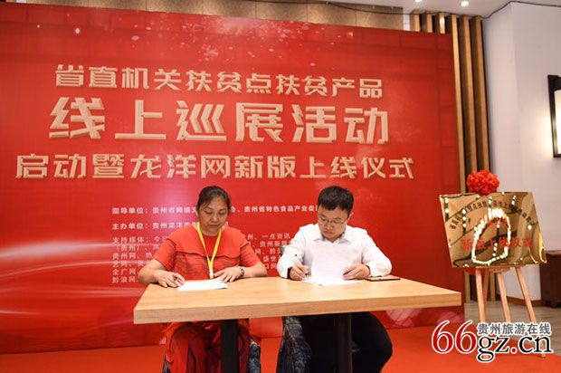 会上,活动牵头单位贵州龙洋传媒有限公司(龙洋网)负责人周弘致辞,贵州省网络文化发展协会负责人王跃作协会网络平台参与网络扶贫工作动员讲话,省特色食品产业促进会负责人王华介绍省直机关扶贫点扶贫产品巡展活动的背景及推进情况。会上还举行了省直机关扶贫点扶贫产品线上巡展活动启动仪式,合作媒体代表签约仪式等。