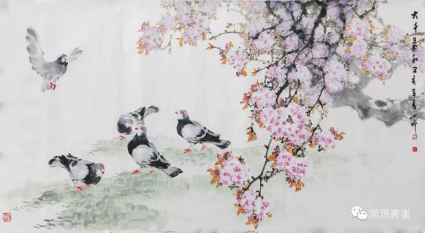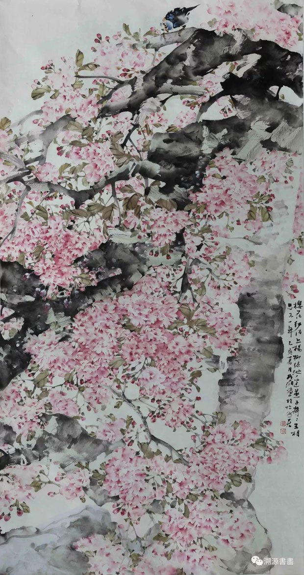 翟启纲 樱花红陌上 68x140cm