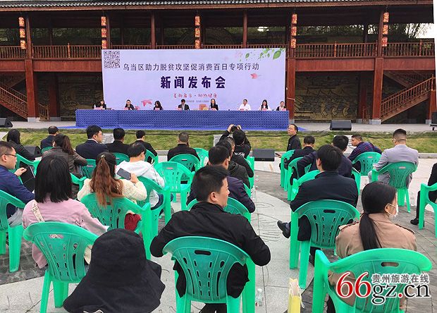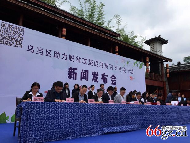 4月30日,贵阳市阳光灿烂、风清气爽,乌当区偏坡乡原味小镇花歌场乐声阵阵、热闹异常,中共乌当区委、乌当区人民政府在这里举行助力脱贫攻坚促消费百日专项行动(简称专项行动)新闻发布会。区委副书记、区政府区长李成发布了“百园百品”、“百企签百户”、“百条旅游线路”、“百家企业齐上线”、“百条惠民措施”的具体内容;现场举行了签约仪式。