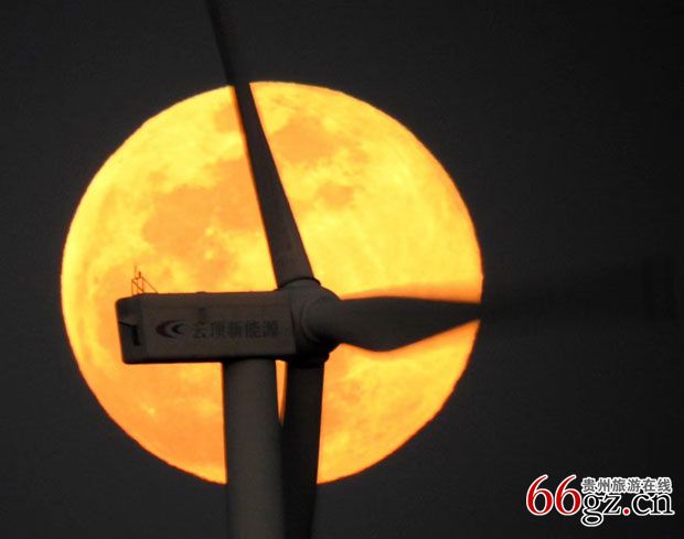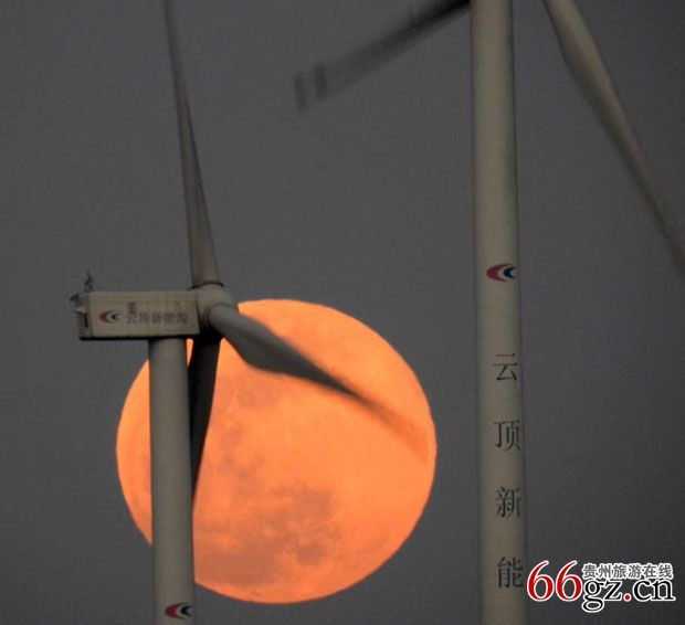 图为5月7日傍晚在贵阳市花溪区高坡乡云顶村拍摄到的超级月亮。